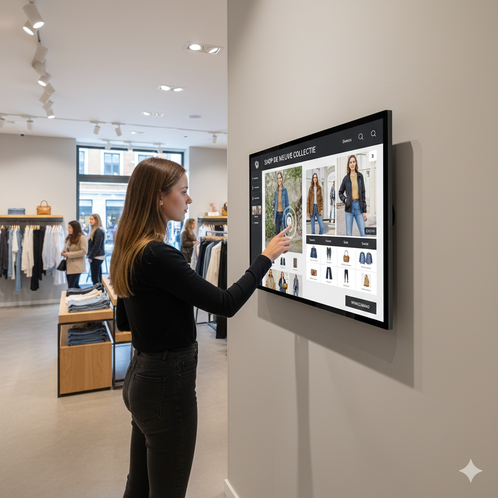 Our interactive touch displays help retailers create an engaging and modern shopping experience. Customers can browse products, explore collections, view details, and check availability directly on the screen. With fast response times and high-resolution visuals, this touch display allows shoppers to interact effortlessly with your brand. Ideal for fashion stores, showrooms, and retail environments looking to boost customer engagement and streamline the buying journey.
