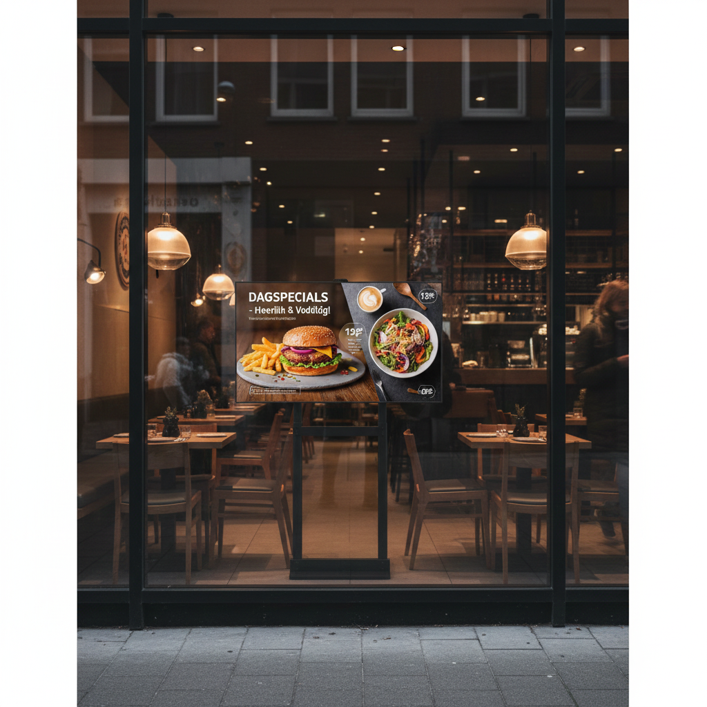 The high-brightness screen ensures your visuals stay sharp and inviting — even in direct sunlight — making it ideal for showcasing combo deals, chef’s specials, or limited-time offers. By boosting visibility and enticing guests before they even walk in, this display enhances the overall dining experience and helps increase foot traffic effortlessly.
